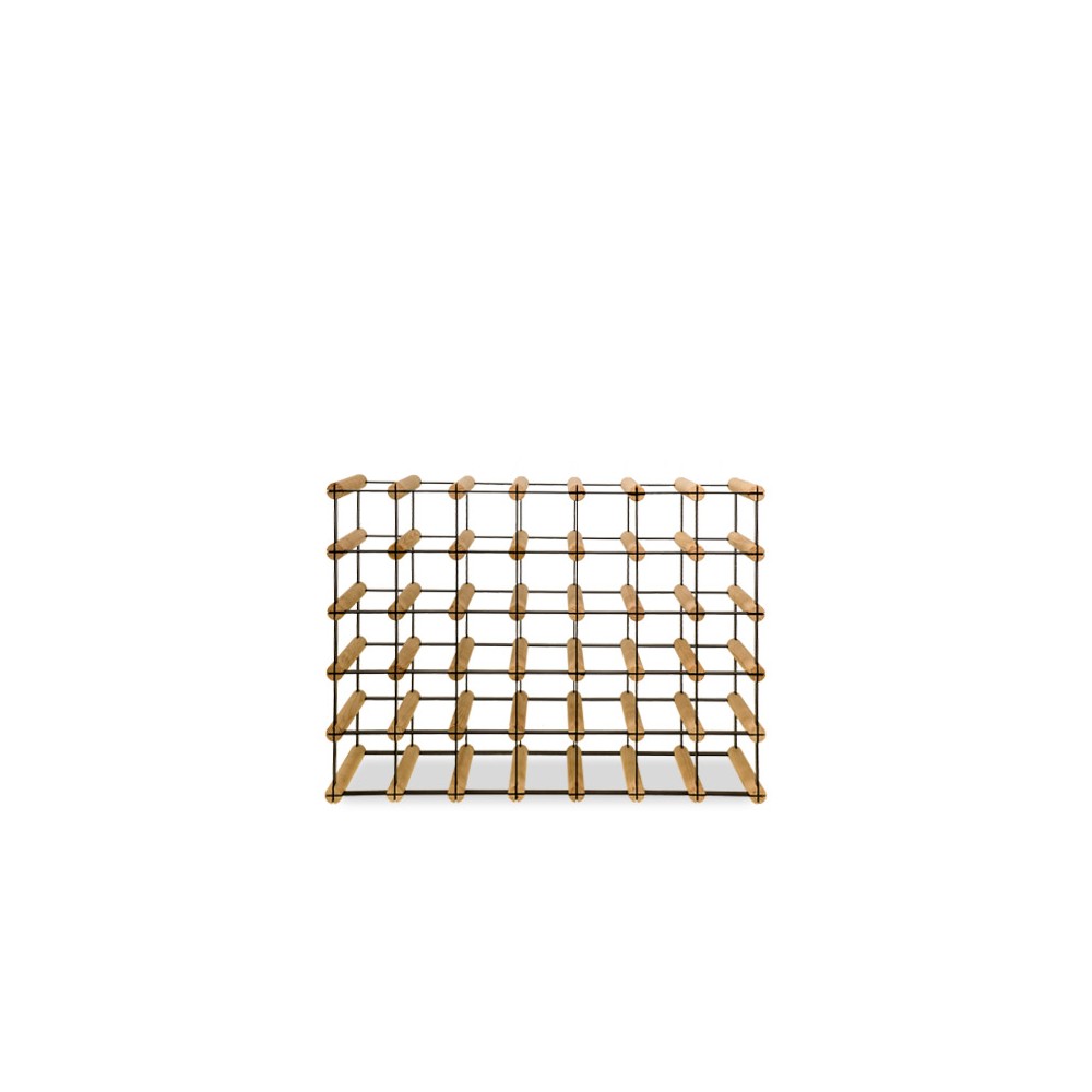 Otwarta konstrukcja z czarnych metalowych płaskowników oraz drążków, umożliwia znakomitą prezentację niemal każdej z butelek zgromadzonych w komorach.
