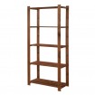 Prosty regał z pięcioma półkami, wykonany z drewna.