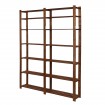 Prosty regał z siedmioma półkami, wykonany z drewna.