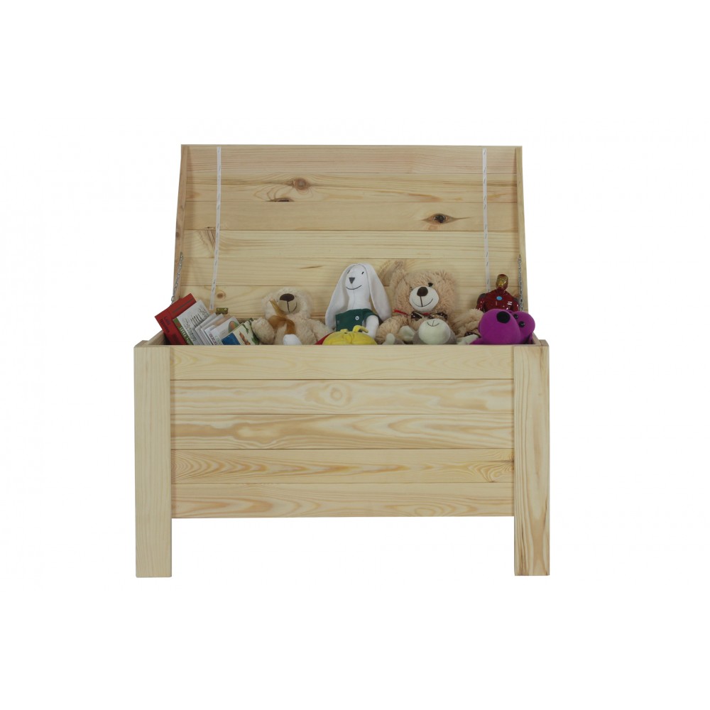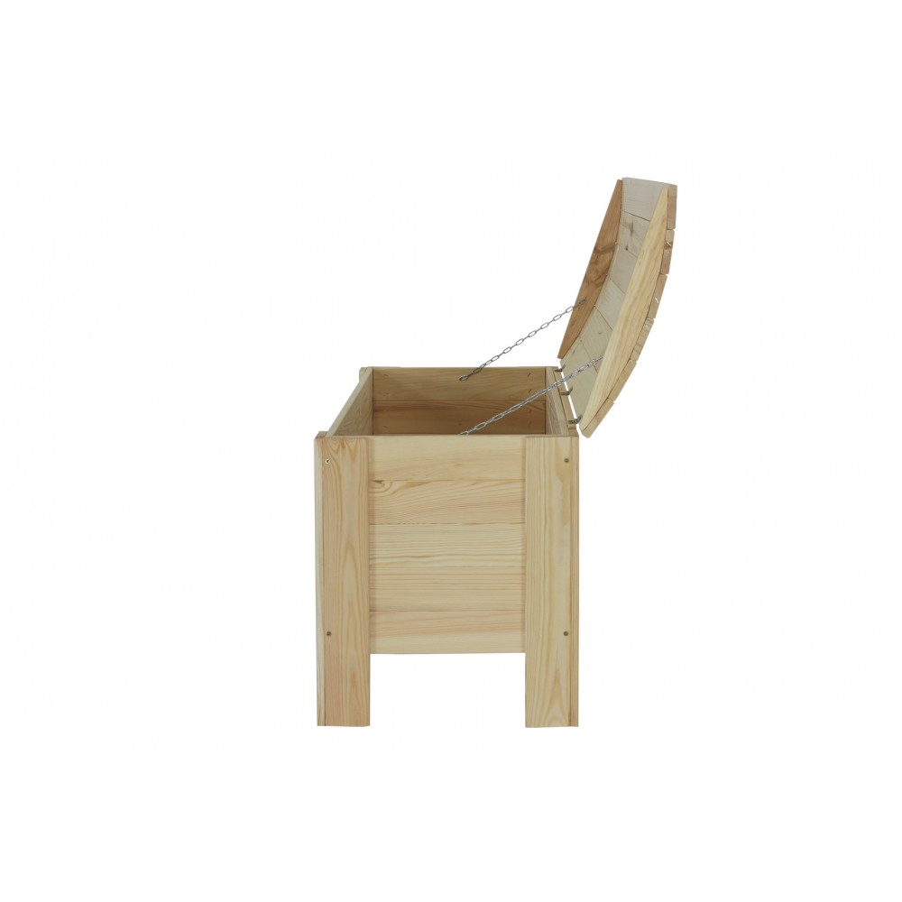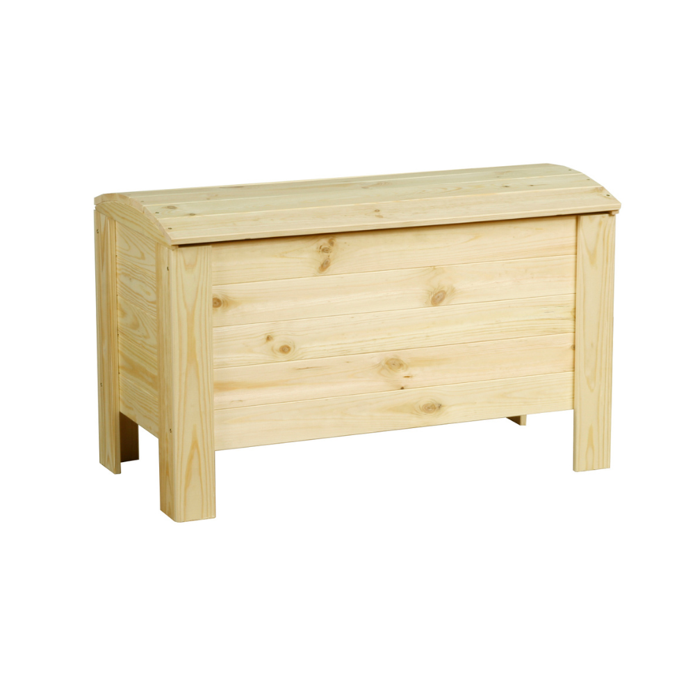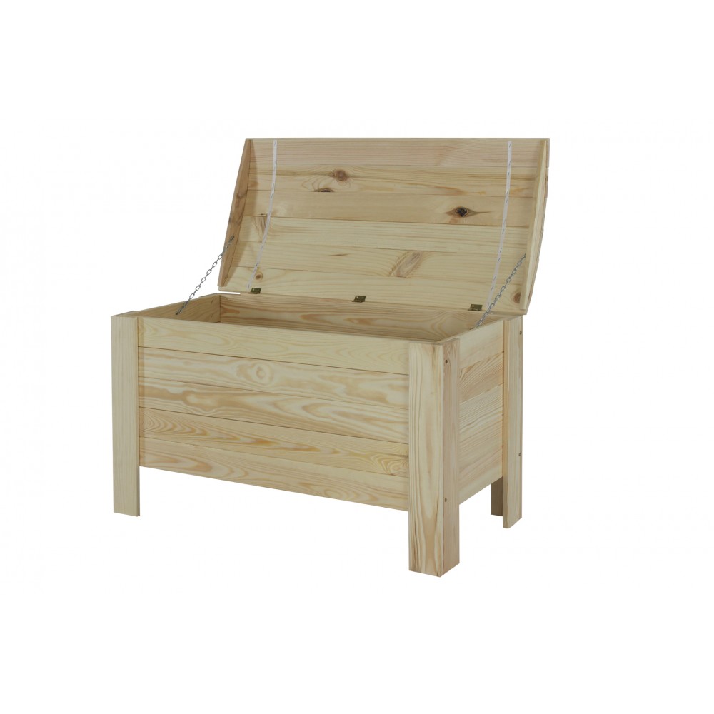 Skrzynia wykonana jest z pachnącego tartakiem, surowego drewna.