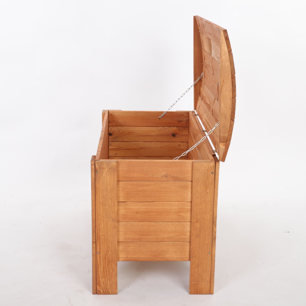 Pojemna skrzynia z półokrągłym wiekiem. Tradycyjny mebel rustykalny.