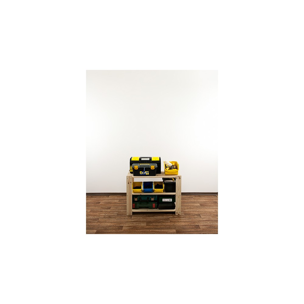 Posiada 3 półki ażurowe o nośności do 120 kg każda (pod warunkiem równomiernego rozmieszczenia ciężaru na całym regale).