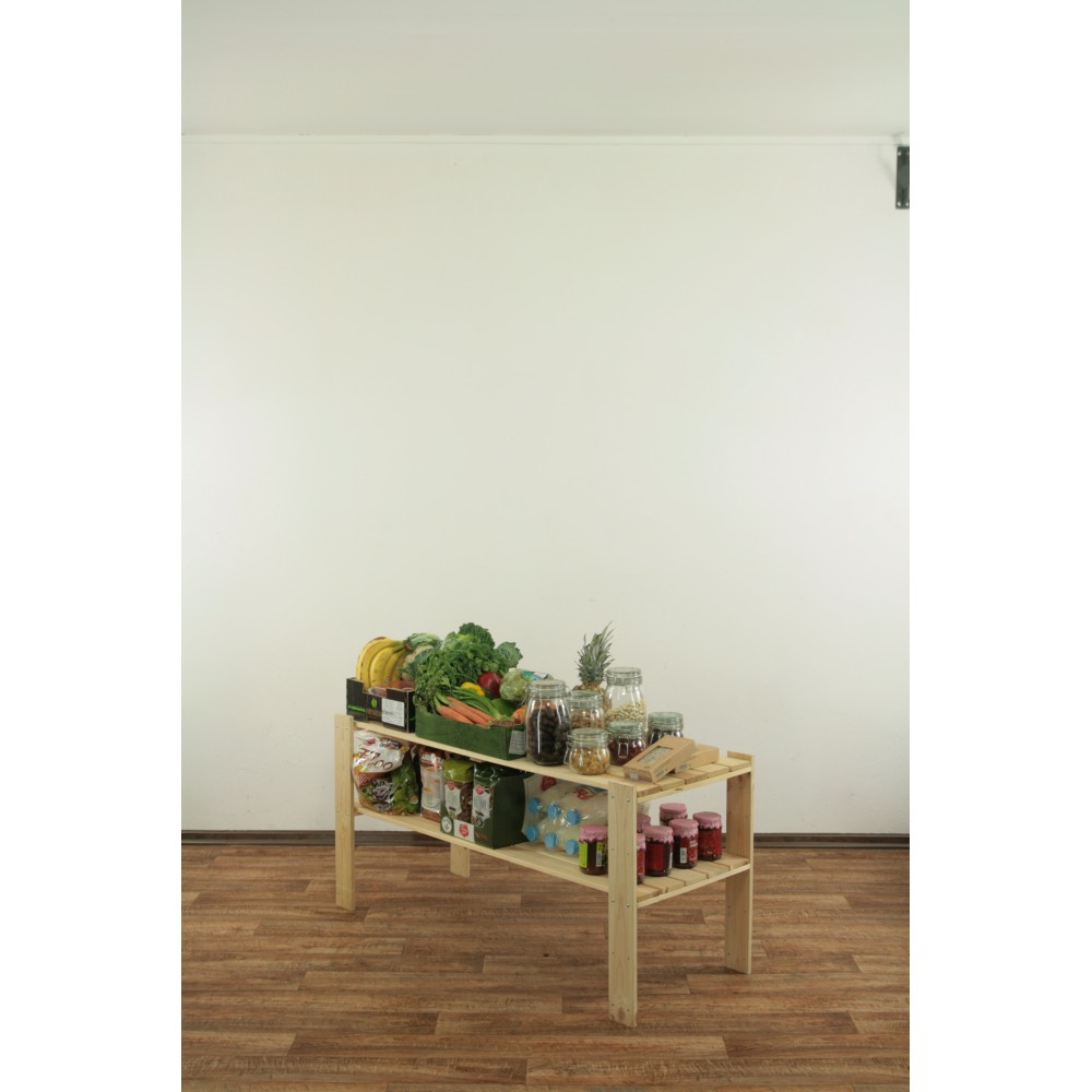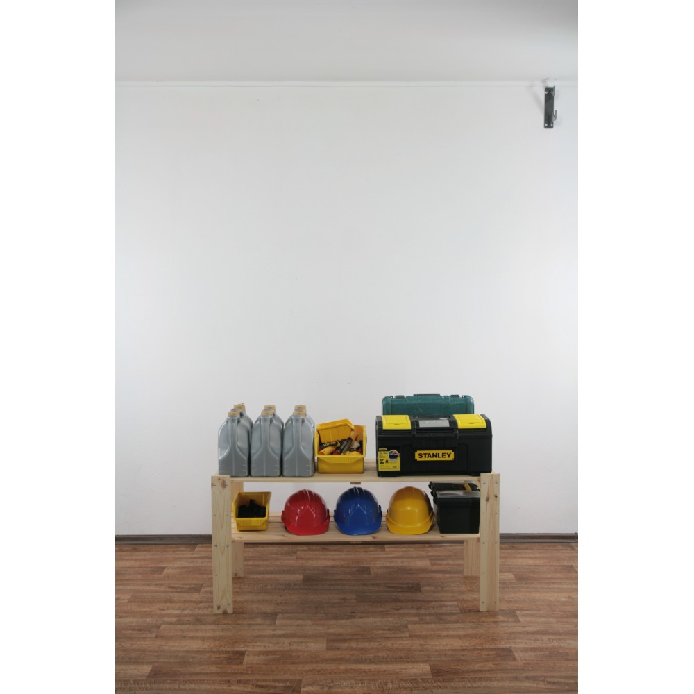 Posiada 2 półki ażurowe o nośności do 120 kg każda (pod warunkiem równomiernego rozmieszczenia ciężaru na całym regale).