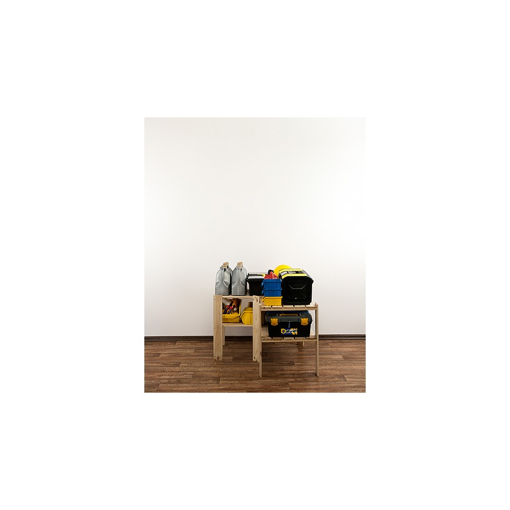 Posiada 2 półki pełne o nośności do 120 kg każda (pod warunkiem równomiernego rozmieszczenia ciężaru na całym regale).