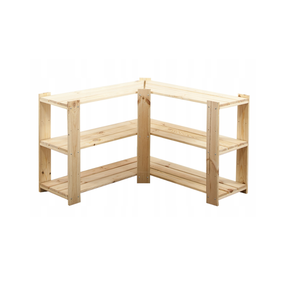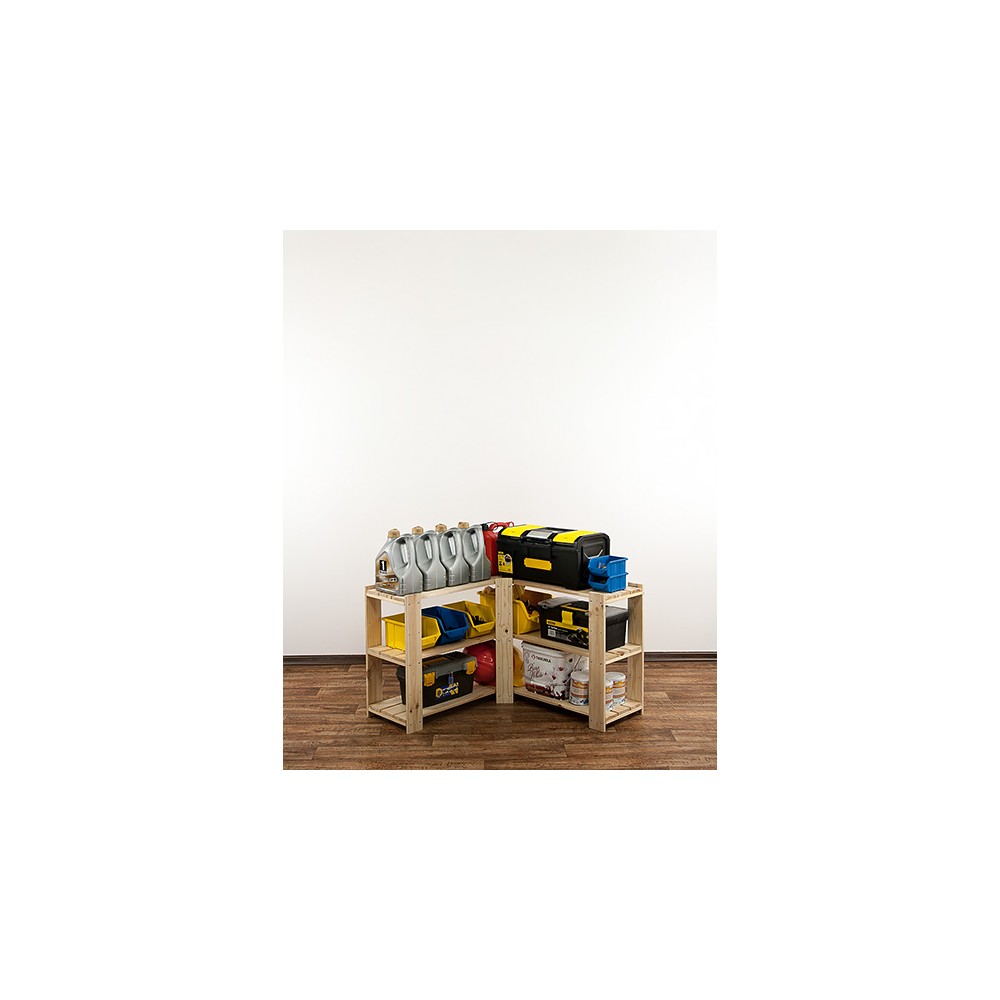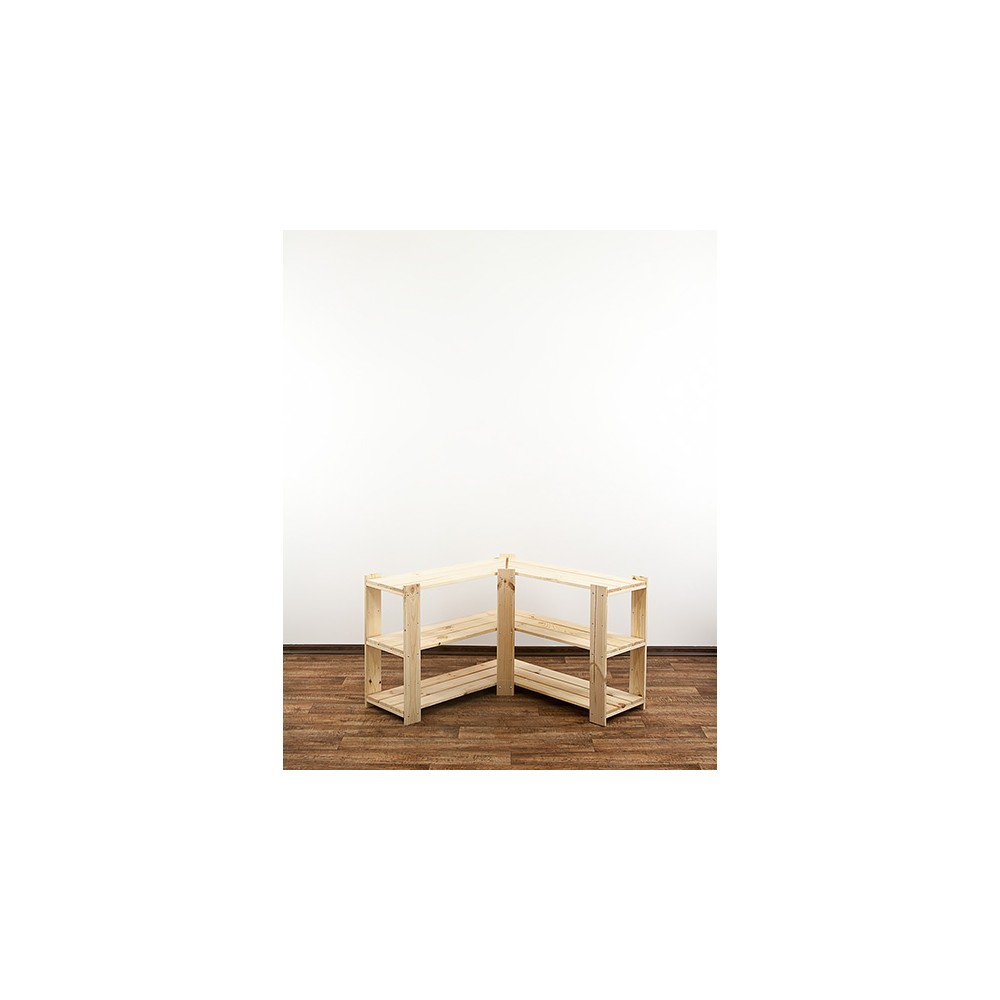 MAXI Regał Narożny Drewniany 64x85x30 cm 3 Półki ażurowe Surowy