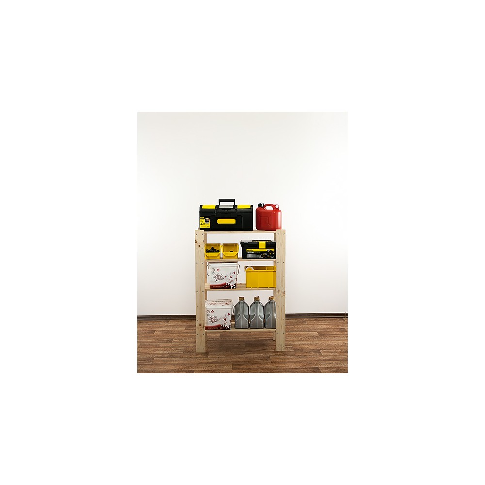 Posiada 4 półki ażurowe o nośności do 120 kg każda (pod warunkiem równomiernego rozmieszczenia ciężaru na całym regale).