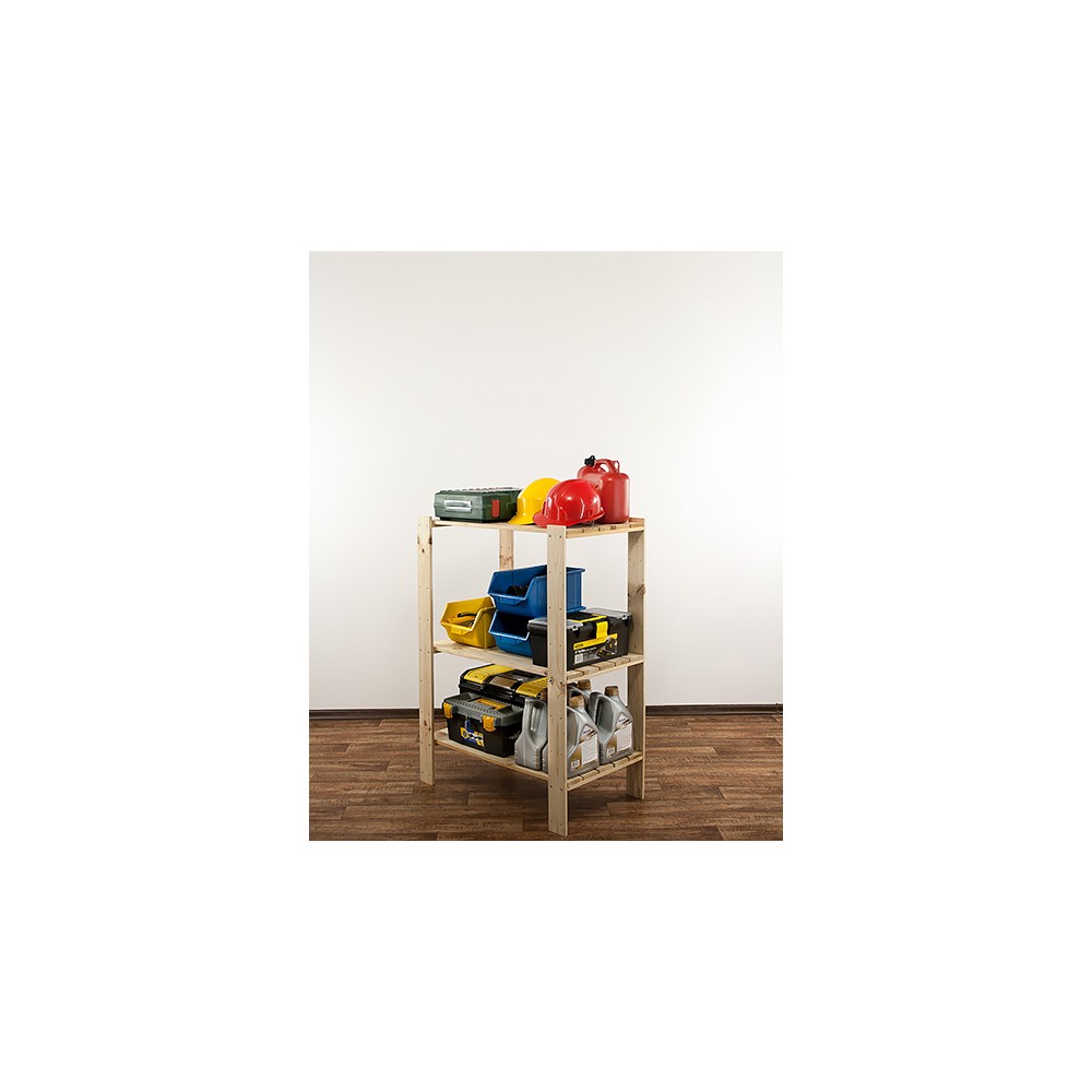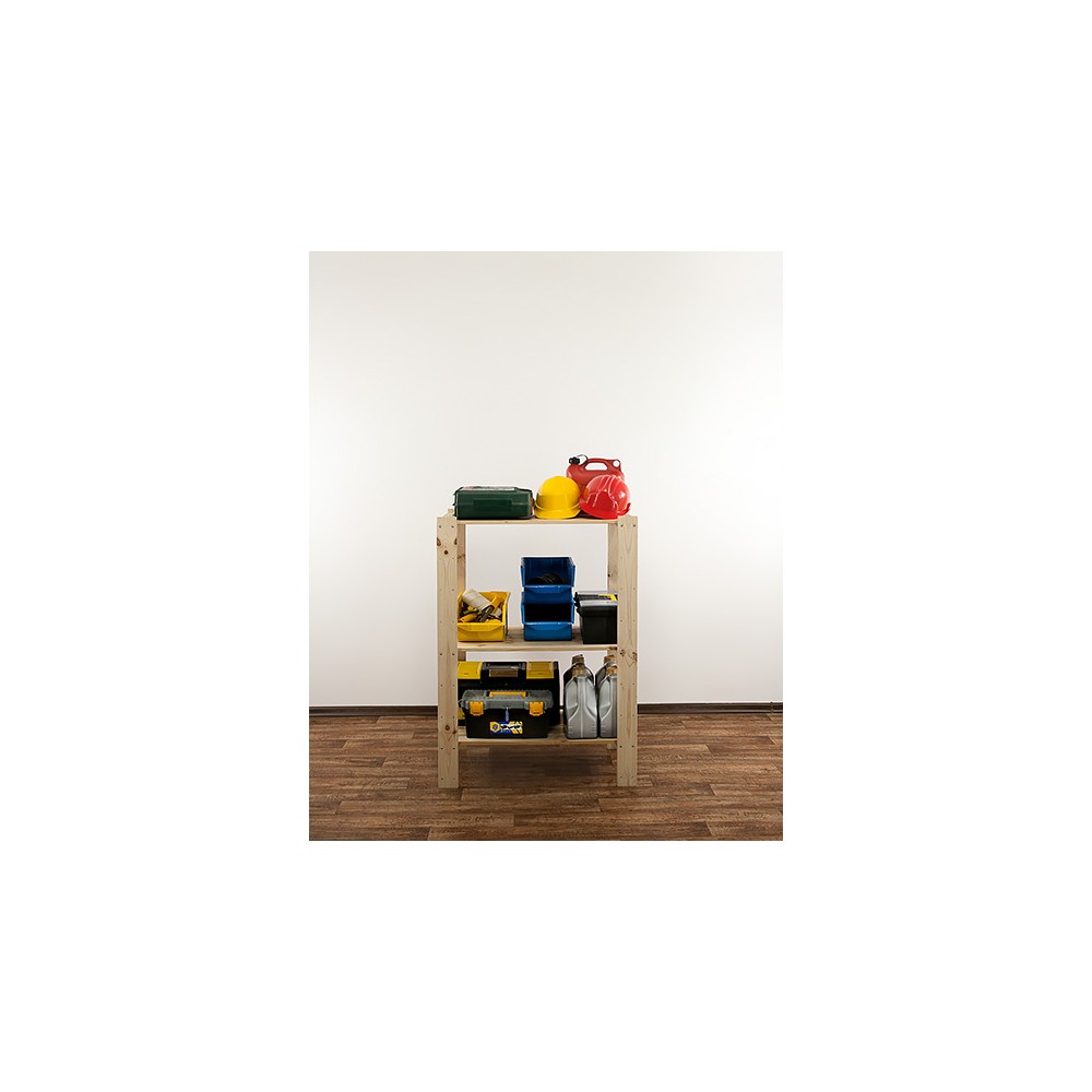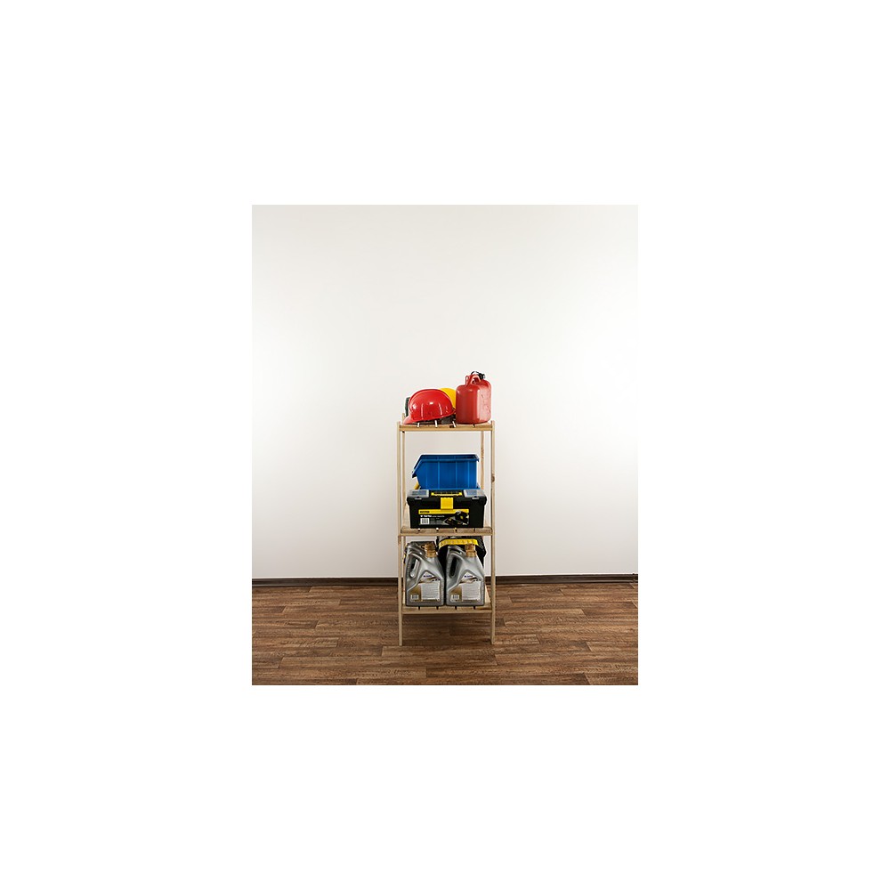 Posiada 3 półki ażurowe o nośności do 120 kg każda (pod warunkiem równomiernego rozmieszczenia ciężaru na całym regale).