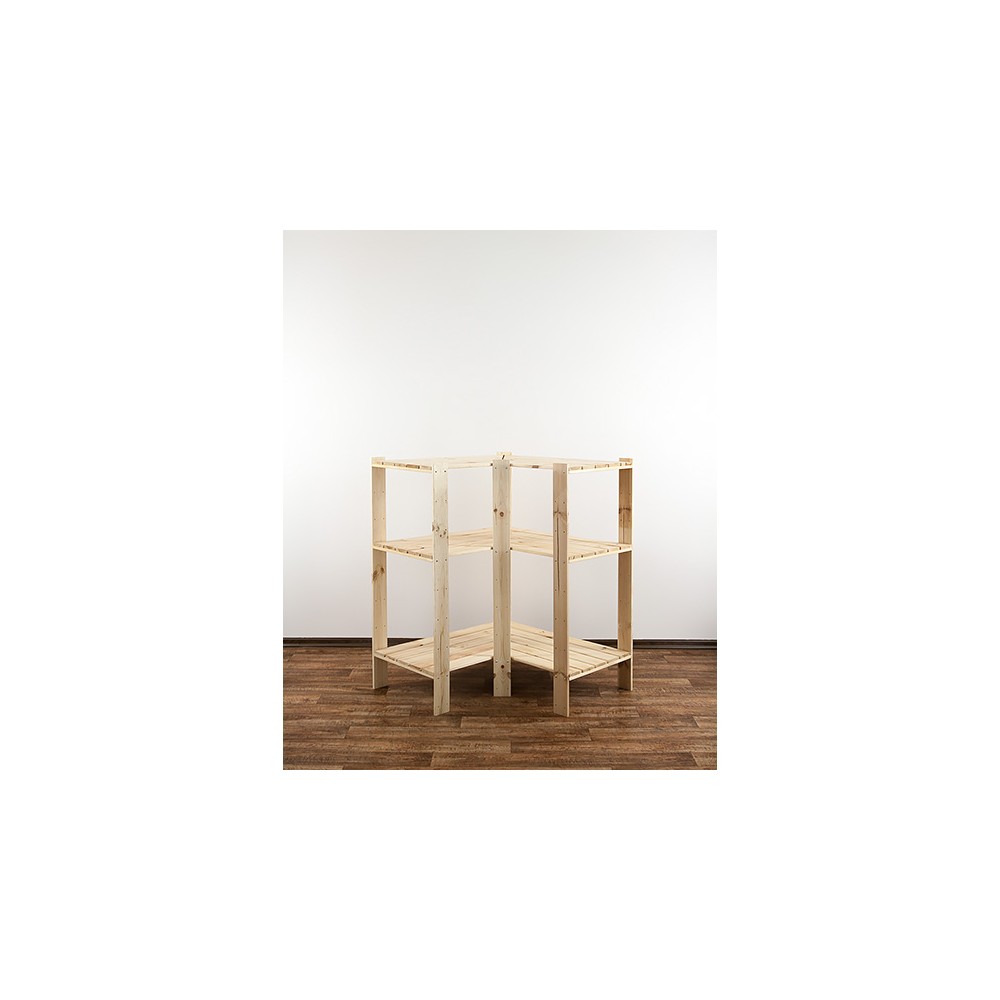 MAXI Regał Narożny Drewniany 115x85x50 cm 3 Półki ażurowe Surowy