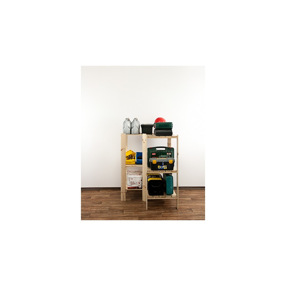 Posiada 3 półki ażurowe o nośności do 120 kg każda (pod warunkiem równomiernego rozmieszczenia ciężaru na całym regale).
