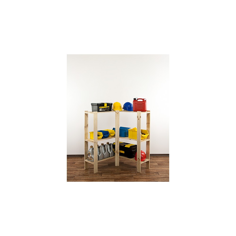 MAXI Regał Narożny Drewniany 115x85x30 cm 3 Półki ażurowe Surowy
