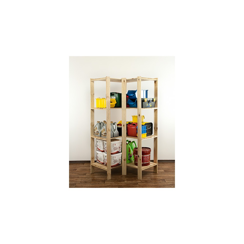MAXI Regał Narożny Drewniany 166,4x85x50 cm 4 Półki pełne Surowy
