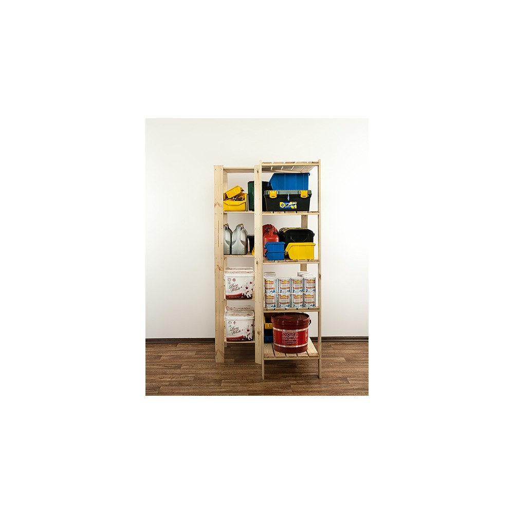 Posiada 5 półek pełnych o nośności do 120 kg każda (pod warunkiem równomiernego rozmieszczenia ciężaru na całym regale).