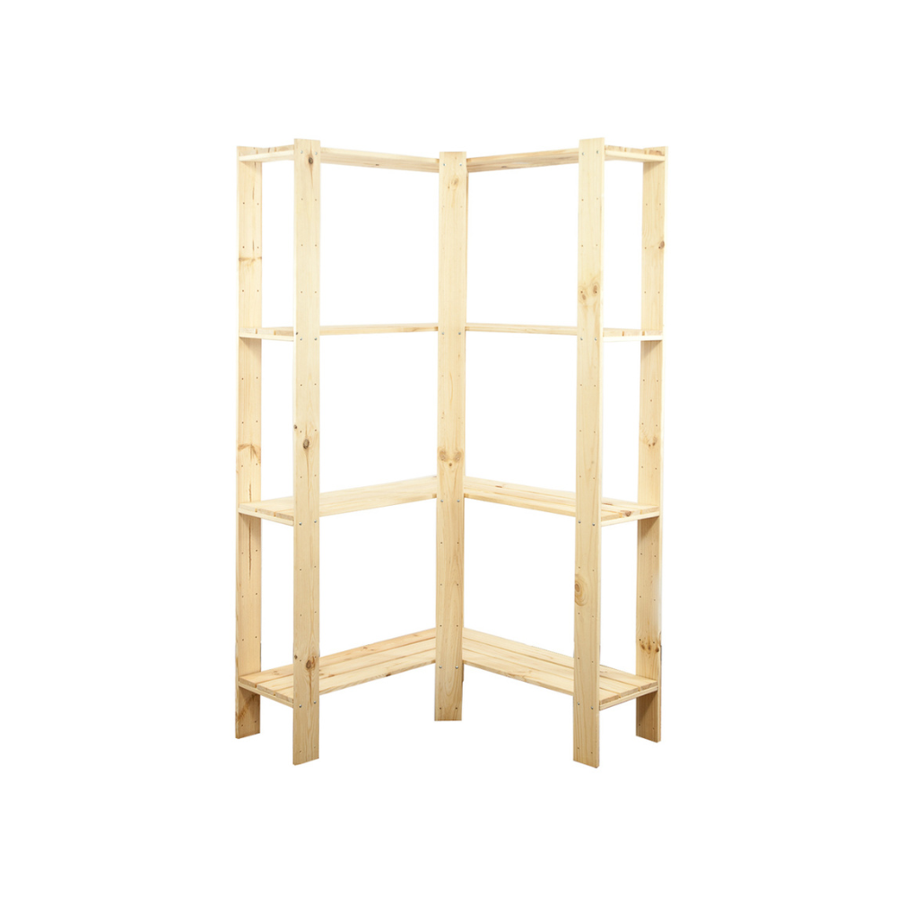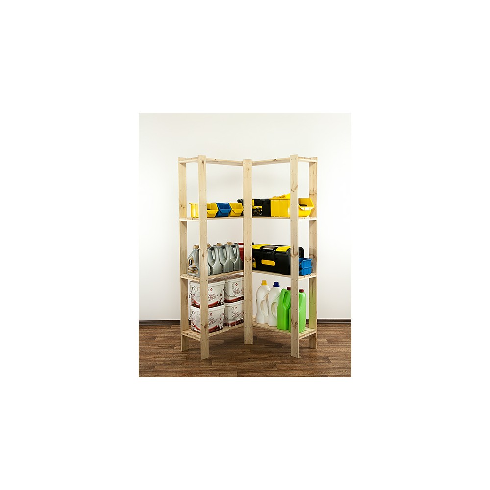MAXI Regał Narożny Drewniany 166,4x85x30 cm 4 Półki pełne Surowy