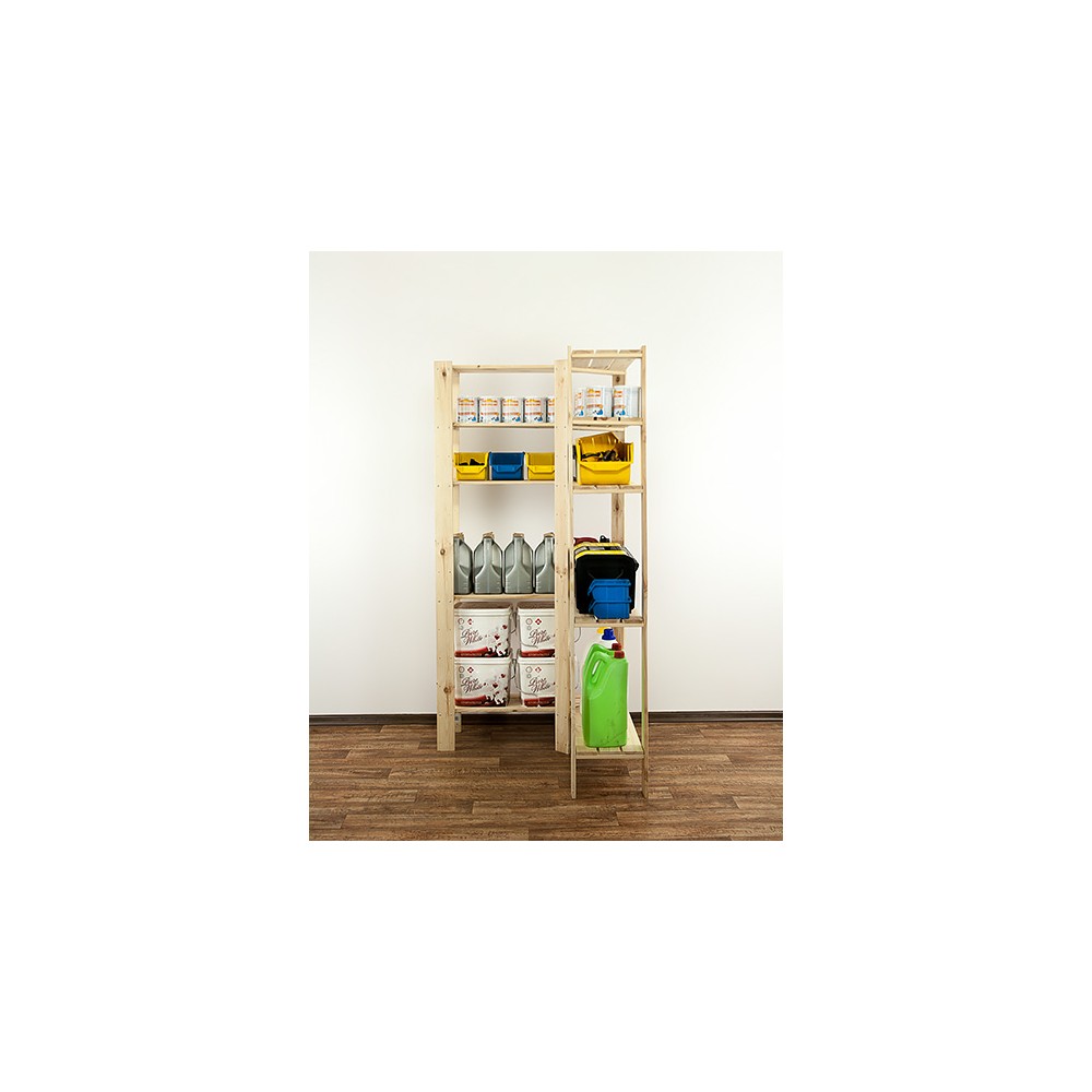 Posiada 5 półek pełnych o nośności do 120 kg każda (pod warunkiem równomiernego rozmieszczenia ciężaru na całym regale).