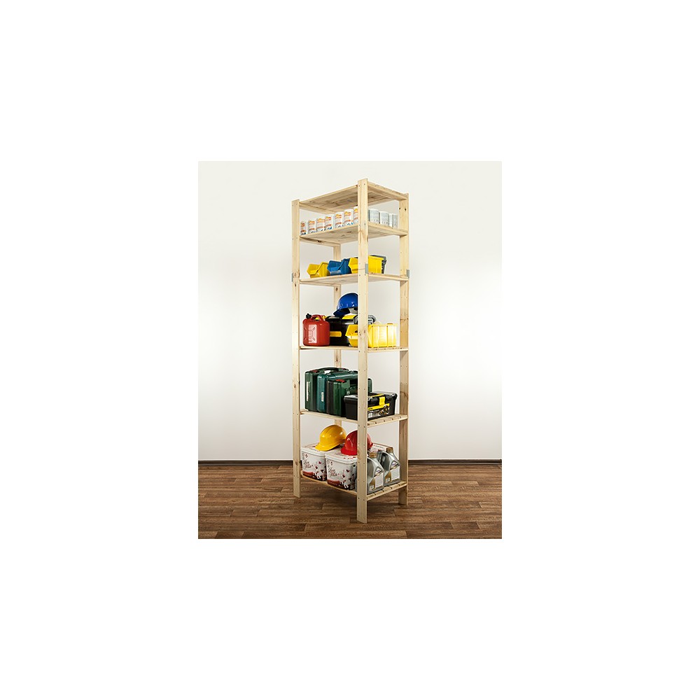 Posiada 6 półek ażurowych o nośności do 120 kg każda (pod warunkiem równomiernego rozmieszczenia ciężaru na całym regale).