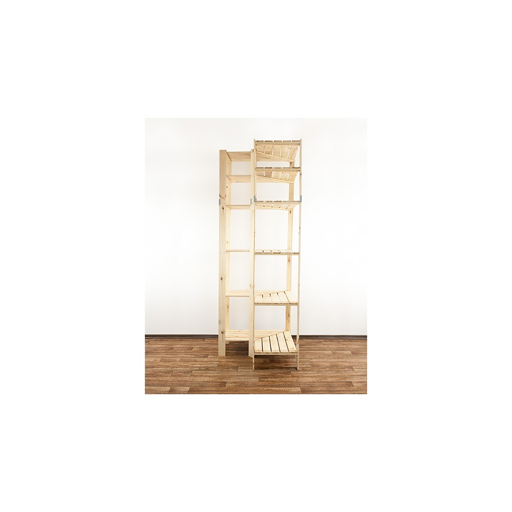 MAXI Regał Narożny Drewniany 230x85x50 cm 6 Półek ażurowych Surowy