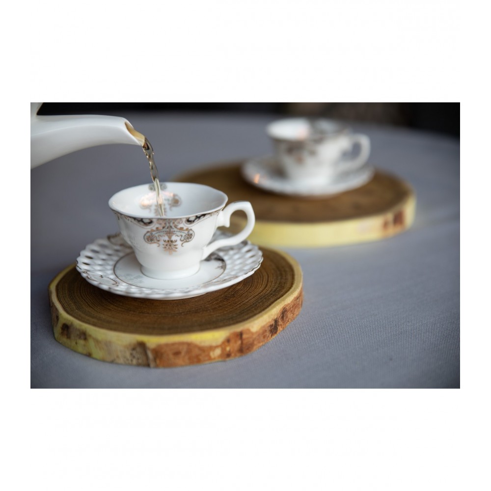 Ozdobne, drewniane podkładki na stół przeznaczone pod kubki, szklanki, talerze i inne kuchenne naczynia.