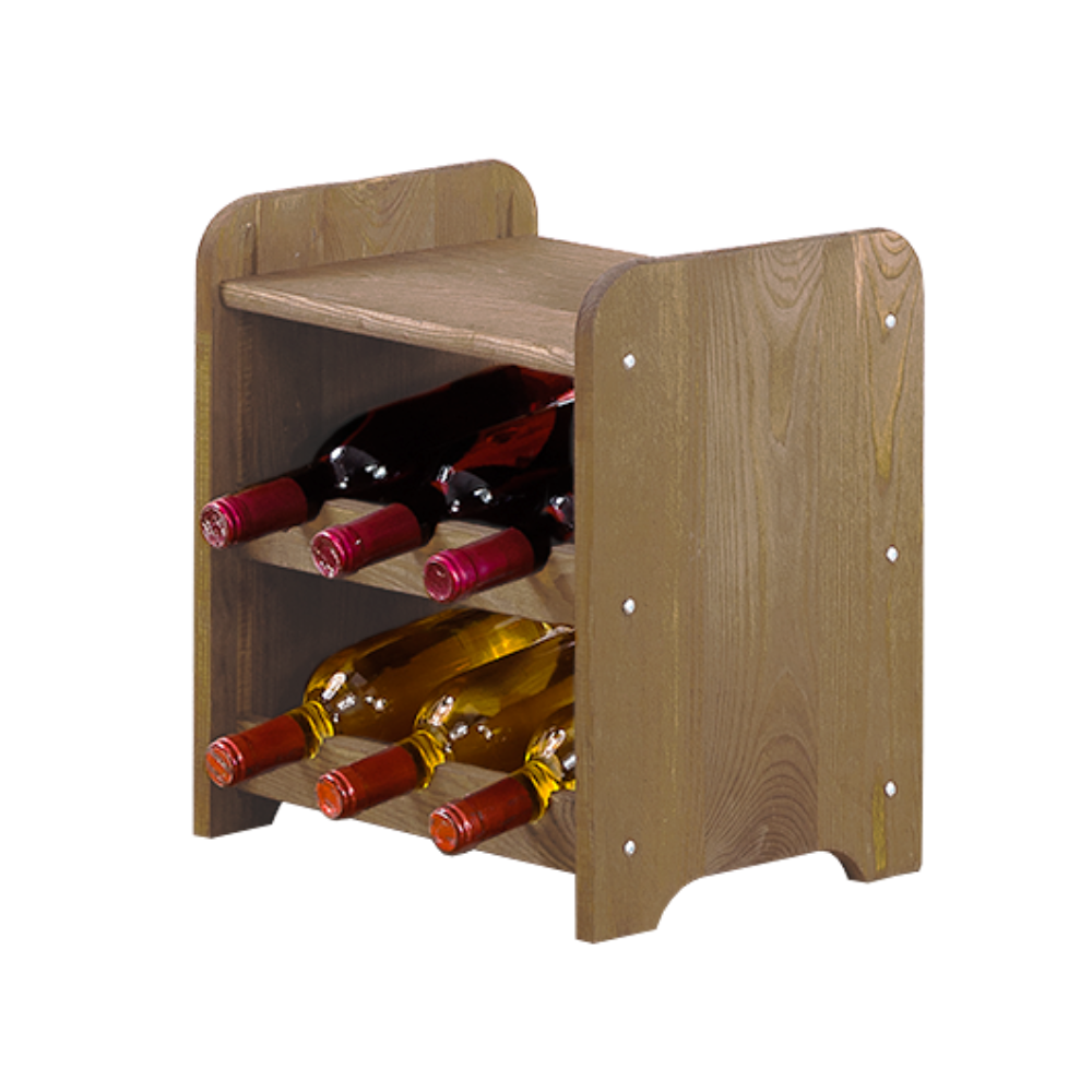 Drewniany regał na wino z półką - RW31 /na 6 butelek/ Brązowy