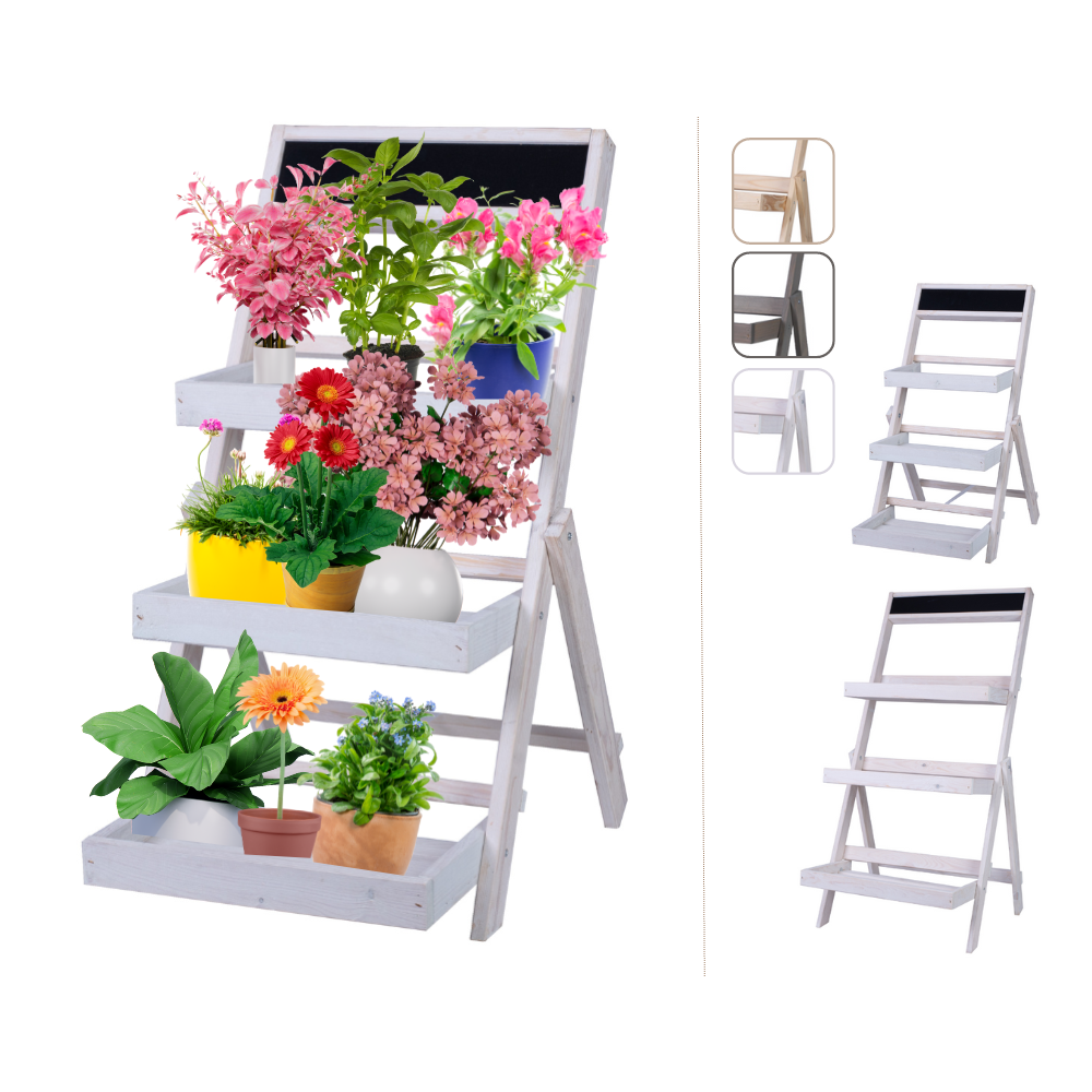 Drewniana etażerka na kwiaty /70x39x48 cm/ Wykończenie Białe