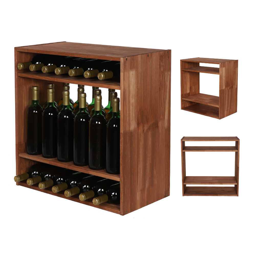 Modułowy Regał na Wino RW61 (2 Półki Pełne) – Brązowe Drewno
