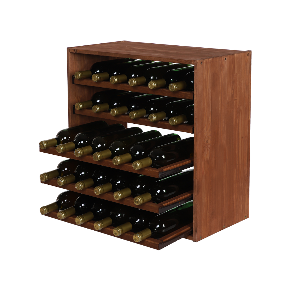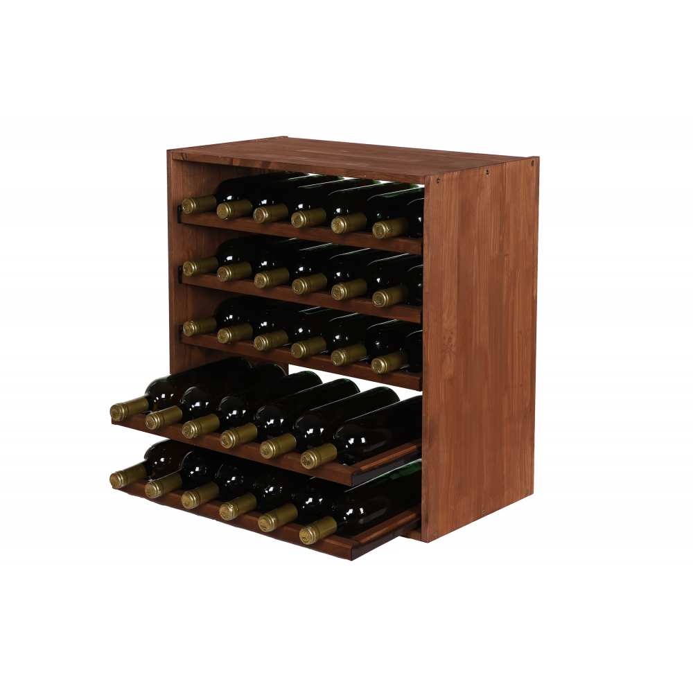 Modułowy Regał na Wino RW61 (5 Wysuwanych Leżni) – Brązowe Drewno