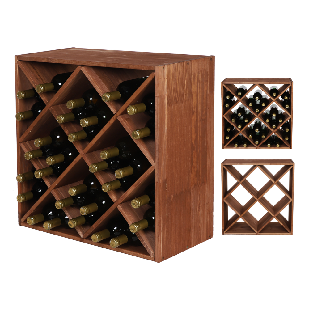 Modułowy Regał na Wino RW61 (Półki X4) – Brązowe Drewno