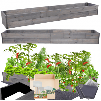 Podwyższany warzywniak wykonany z litego drewna sosnowego. W zestawie z włókniną pełniącą funkcję izolacji od podłoża.