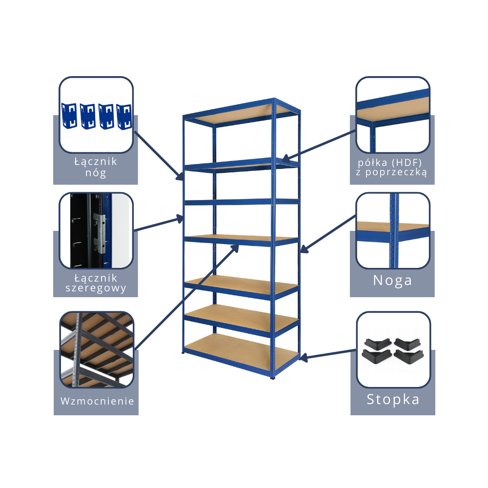 Regał Helios 213x90x35 cm 5 półek/400kg Niebiesko-Pomarańczowy