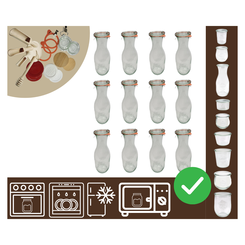 Słoiki WECK 12szt/ szkl. wieko,gumka, bl KARAFKA 1l 1062ml BUTELKA