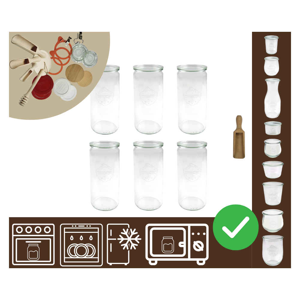 Zarejestruj sięSłoiki WECK 6szt/ szklane wieko, miarka słoik 1040ml 1l CYLINDER
