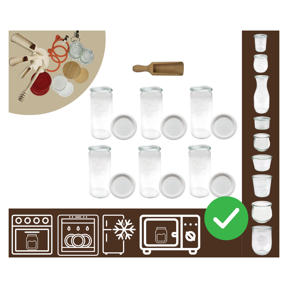 Zarejestruj sięSłoiki WECK 6szt/ plastikowe wieko, miarka słoik 1040ml 1l CYLINDER