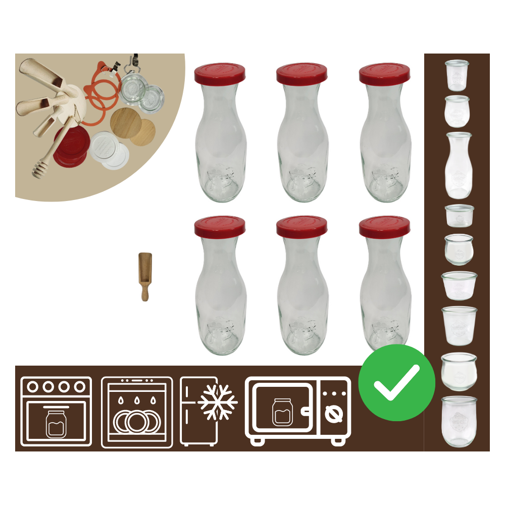 Słoiki WECK 6szt/ silikonowe wieko, miarka KARAFKA 1l 1062ml BUTELKA