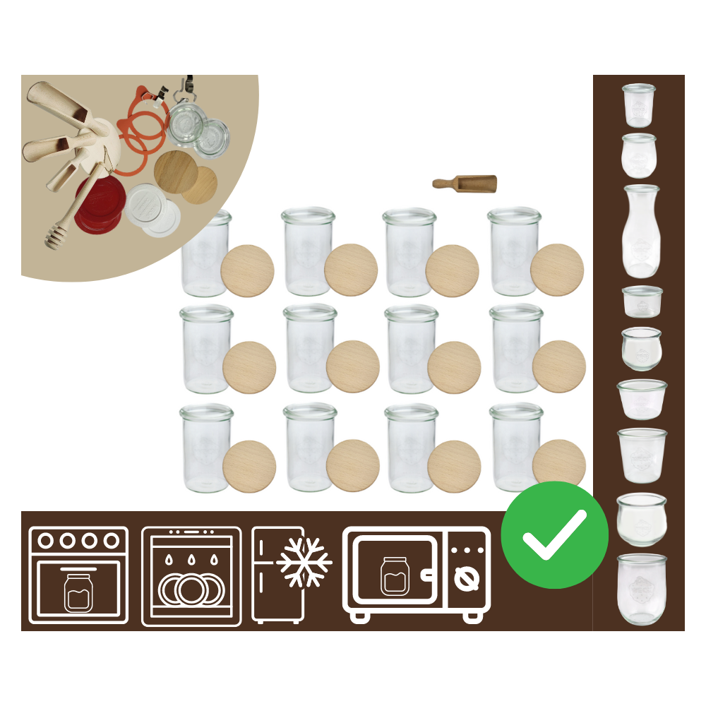 Zarejestruj sięSłoiki WECK 12szt/ drewniane wieko, miarka słoik 1050ml 1l MOLD
