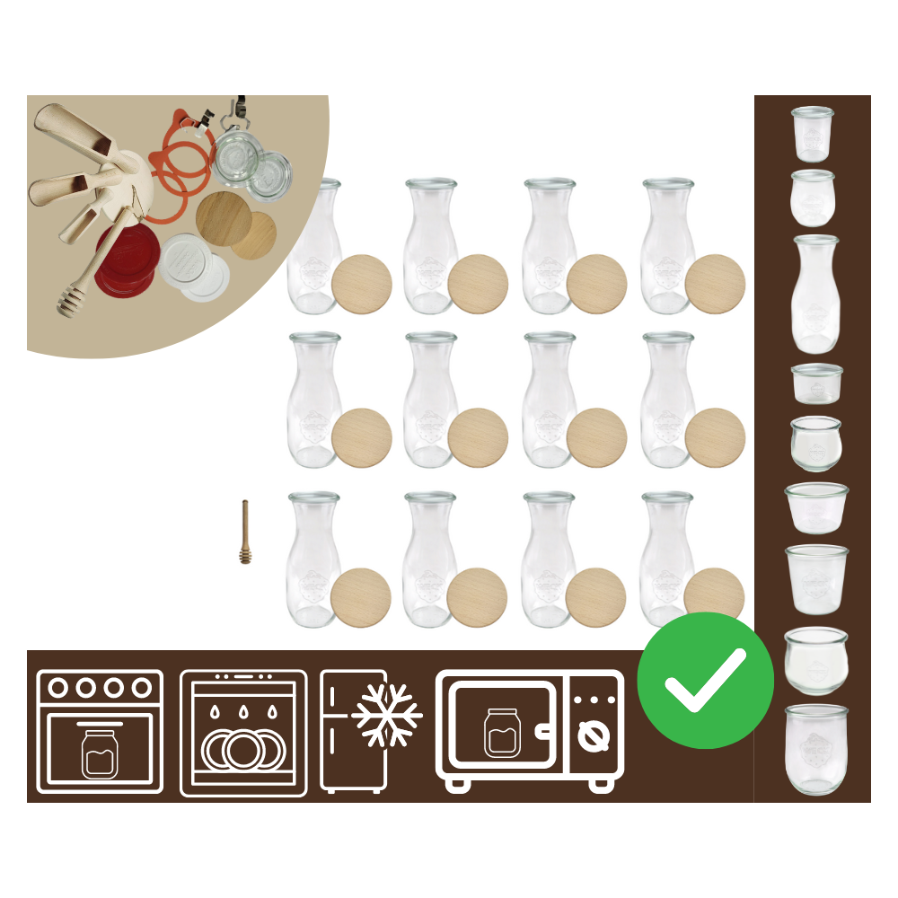 Słoiki WECK 12szt/ drewniane wieko, nabierak KARAFKA 1l 1062ml BUTELKA