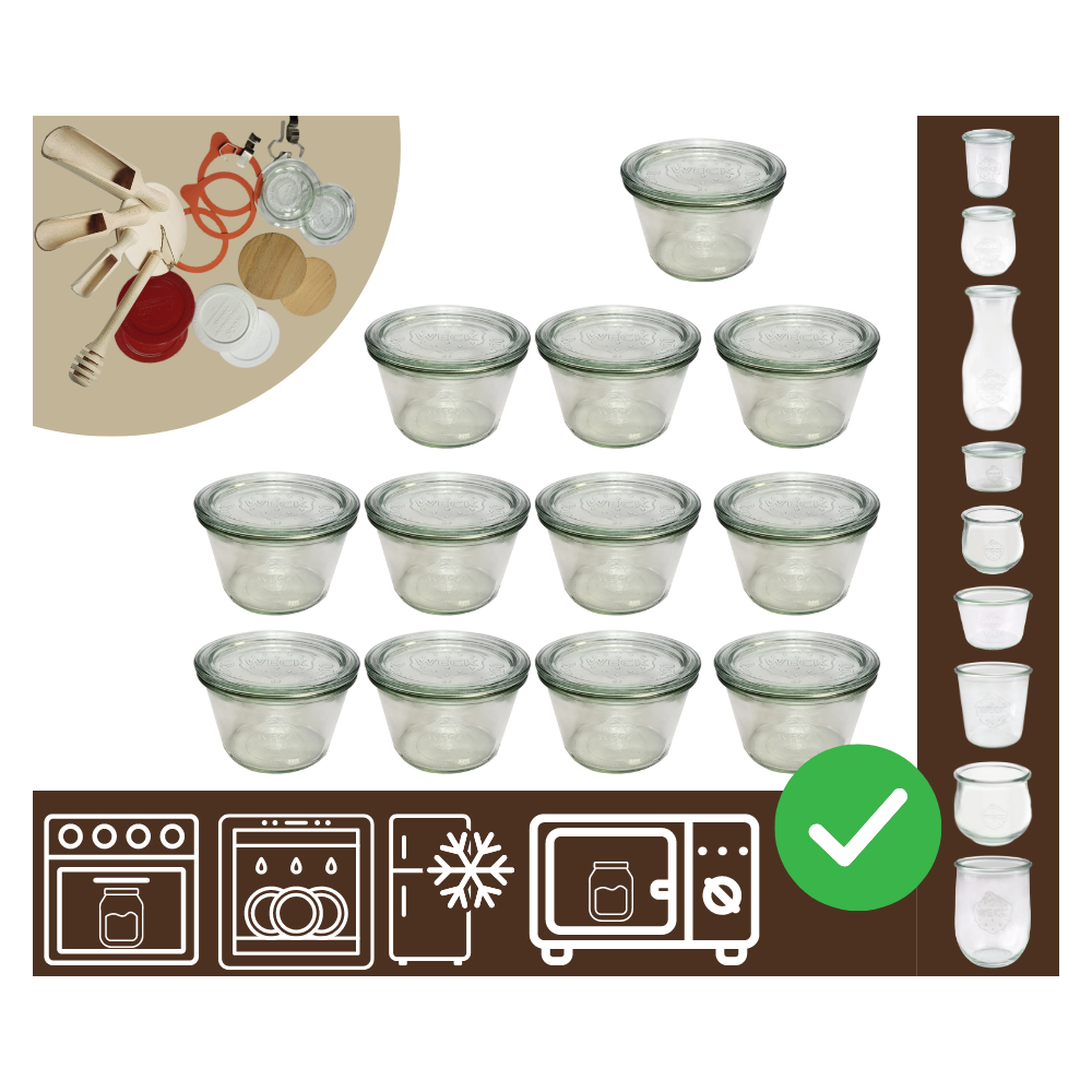 - słoiki weck w zestawach 6 i 12 sztuk, w przedziale objętości od 160 - 1062 ml;