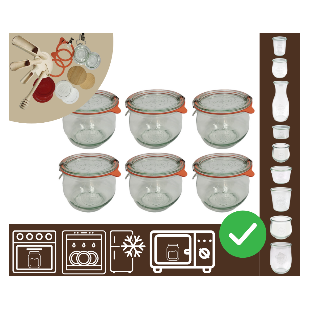 - słoiki weck w zestawach 6 i 12 sztuk, w przedziale objętości od 160 - 1062 ml;