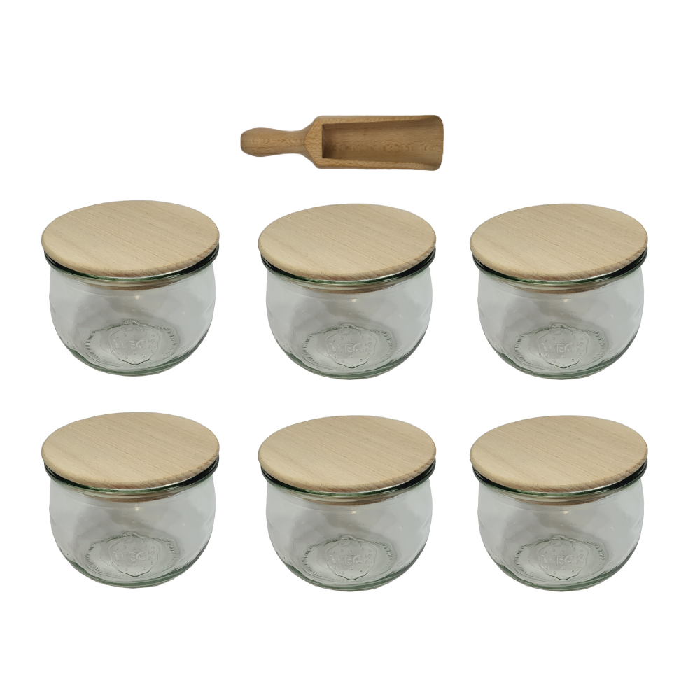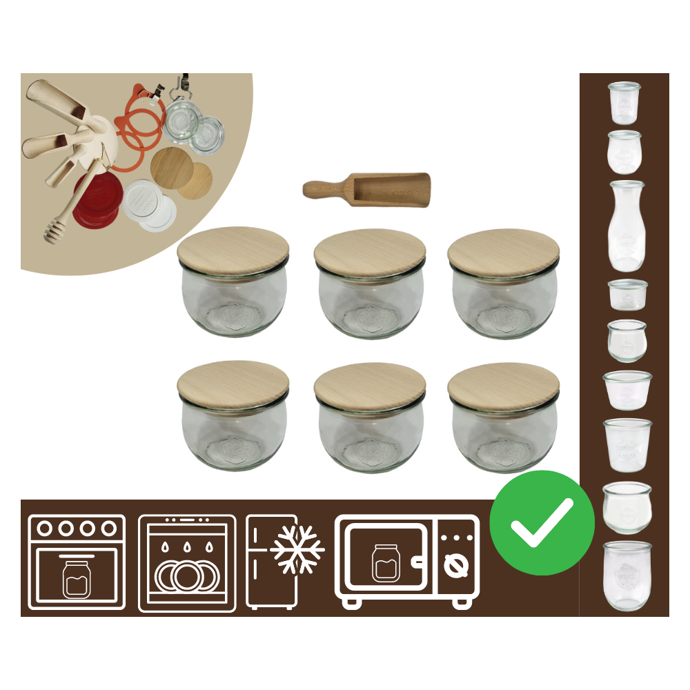 Zarejestruj sięSłoiki WECK 6szt/ drewniane wieko, miarka słoik 370ml TULIP