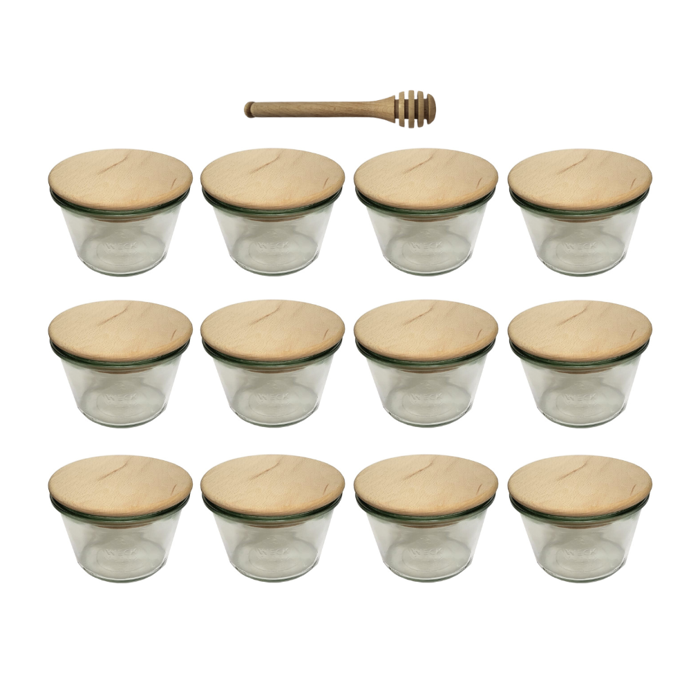 Zarejestruj sięSłoiki WECK 12szt/ drewniane wieko, nabierak słoik 370ml MOLD