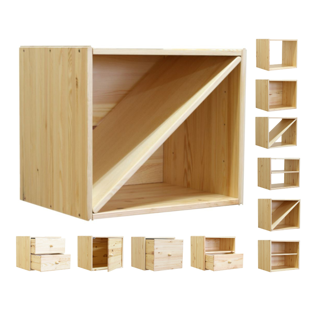 Drewniany regał modułowy /przekątna zamknięta półka RSKL – Naturalny
