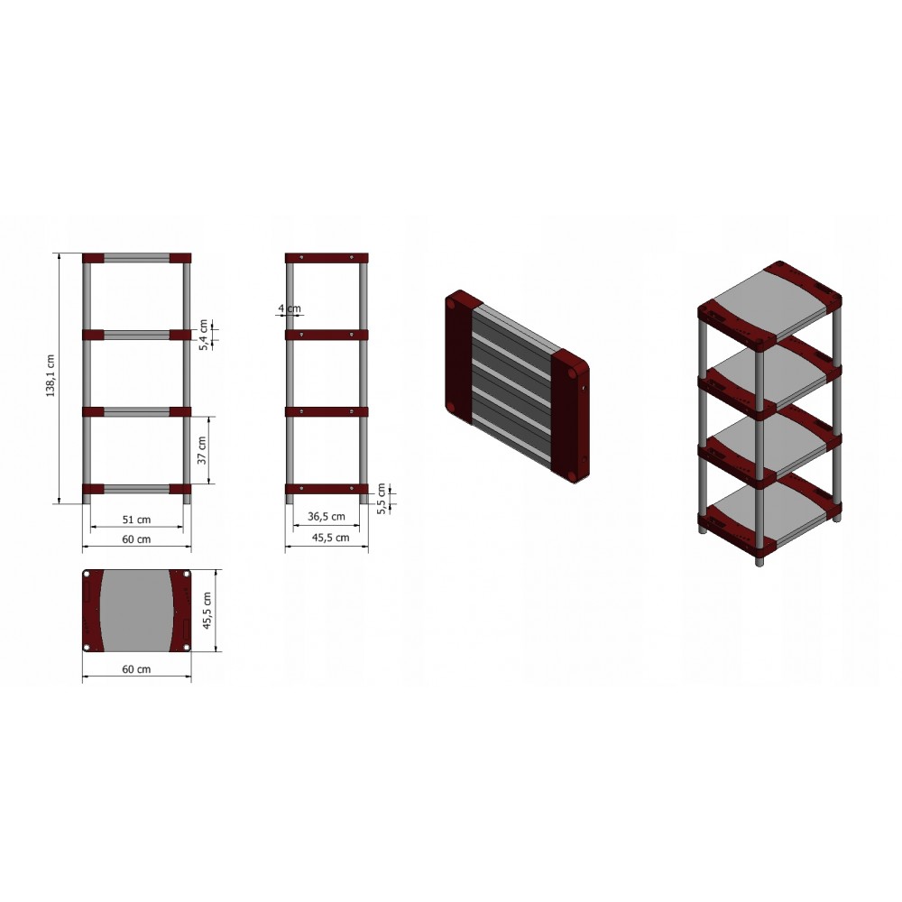 Regały 4-półkowe, 5-półkowe i 6-półkowe;