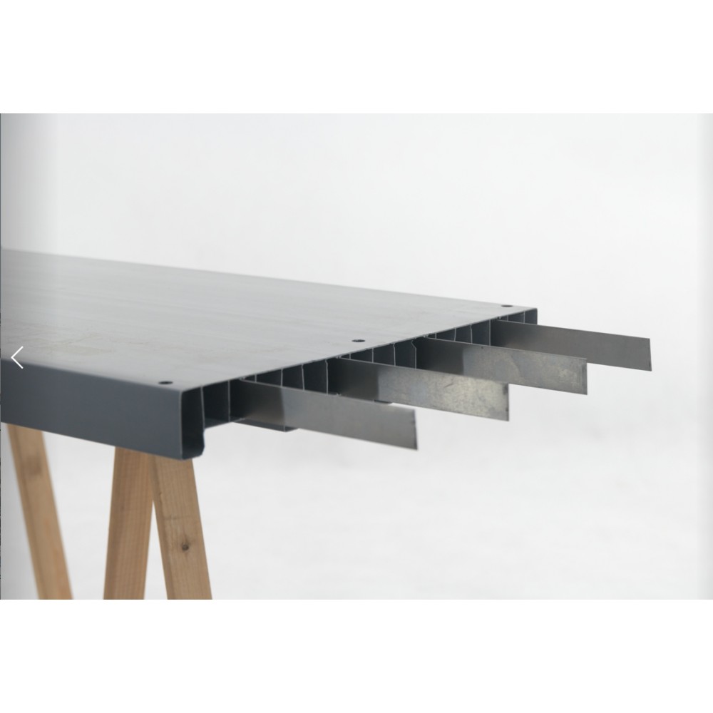 Zamówić można regał niemal na każdy wymiar - dobrać wszystkie parametry oraz wykończenie według potrzeb.Szybki montaż wciskowy bez śrub. Metalowe wzmocnienia w specjalnych perforacjach blatu półki.