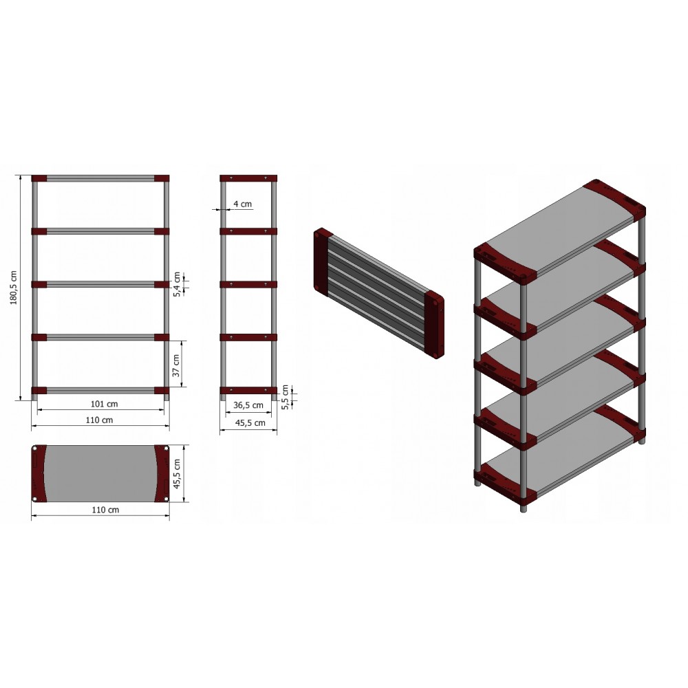 Regały 4-półkowe, 5-półkowe i 6-półkowe;