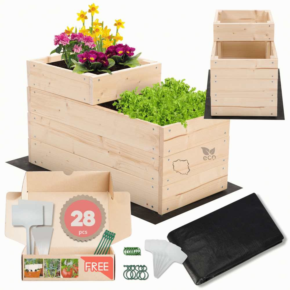 Drewniana kaskadowa skrzynia na warzywniak - ZESTAW OGRODNIKA GRATIS - zapoznaj się z olbrzymią ilością dostępnych kombinacji bezpośrednio od polskiego producenta!