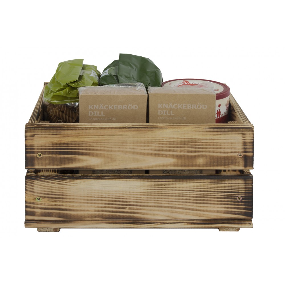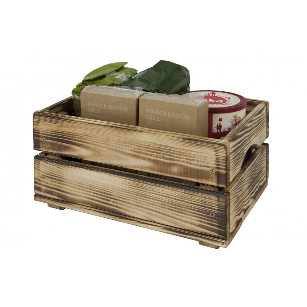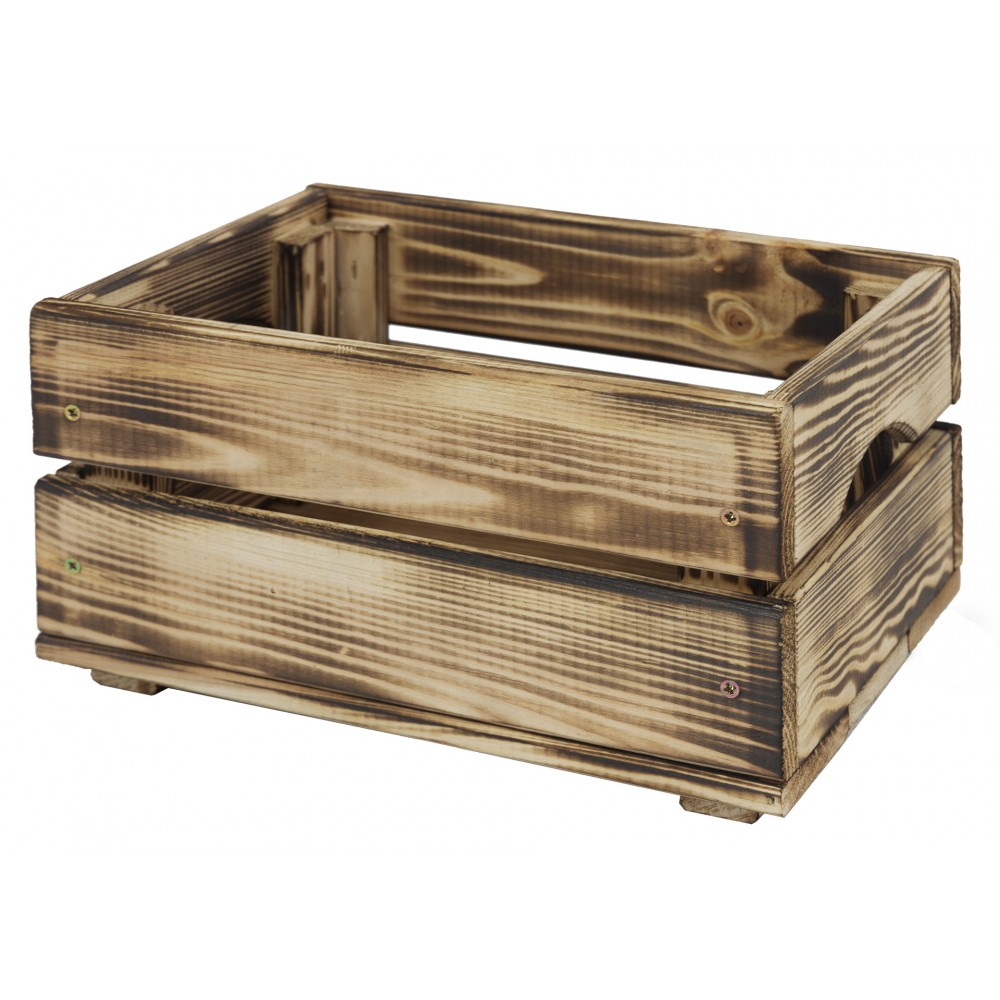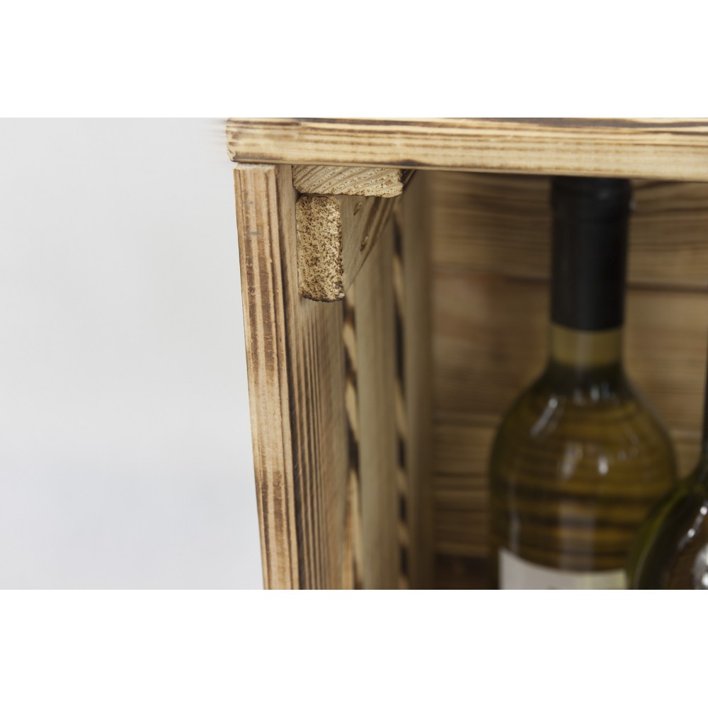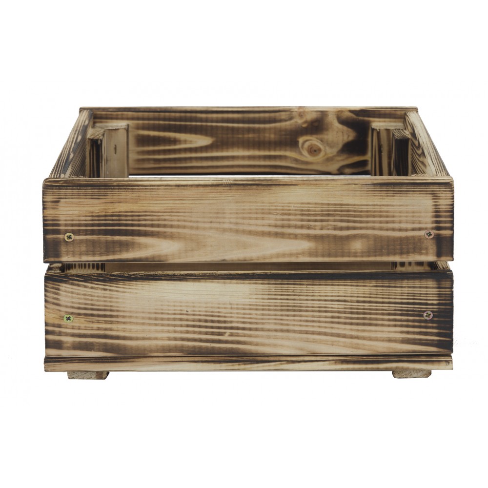 Skrzynka została wykonana ze zdrowego drewna sosnowego, poddana obróbce czterostronnej oraz postarzona metodą opalania. Dzięki czemu podkreślamy piękno drewna i jego fakturę. Metoda ta zwiększa trwałość i ochrania drewno przed czynnikami zewnętrznymi.