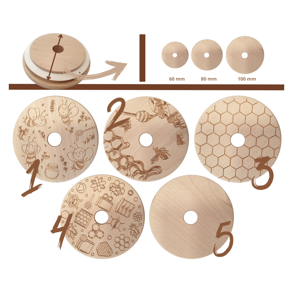 - Rodzaj dodatku: drewniane bukowe wieko nr 1 (pszczółki) + nabierak do miodu