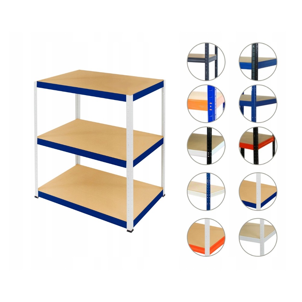 - kolory obramowań (poprzeczek) półek: niebieska, niebieska, niebieska