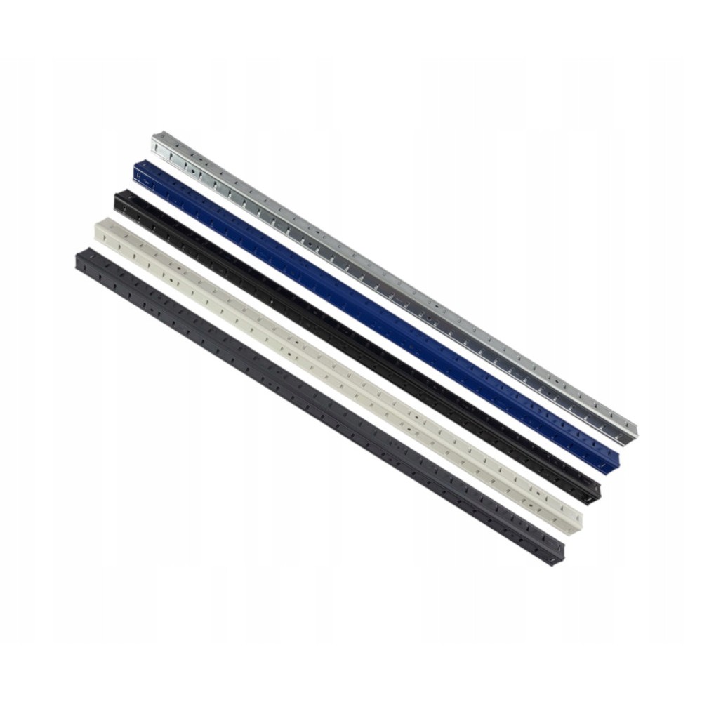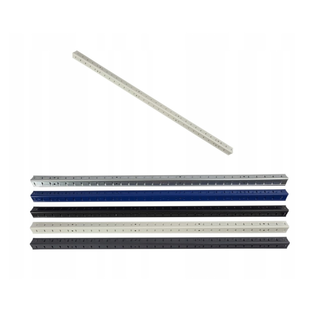 Nogi są wykonane z kątownika stalowego, który posiada perforację umożliwiającą regulację mocowanie półek.