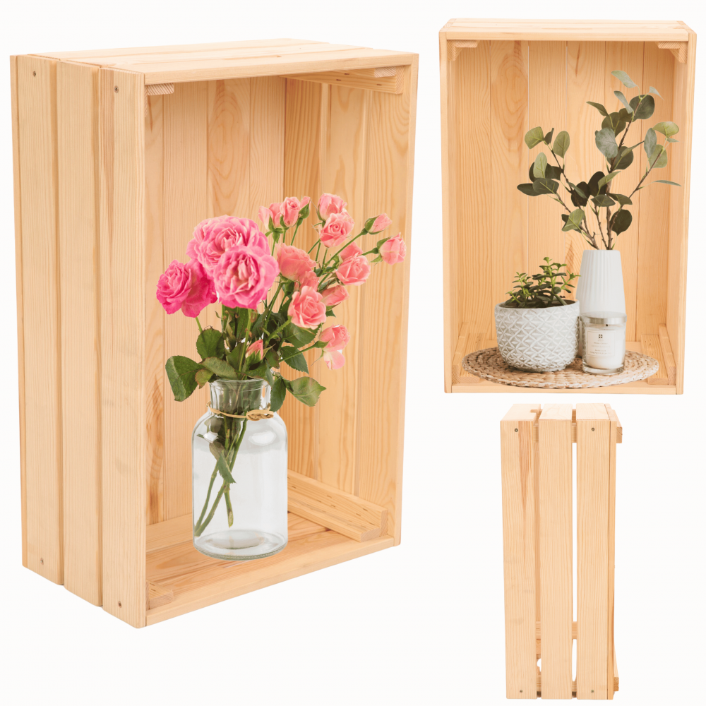 Drewniana skrzynka dekoracyjna z bogatej kolekcji skrzynek - do postawienia, do powieszenia, wersje podstawowe i z półkami. Stwórz idealną kompozycję do swojego pomieszczenia.