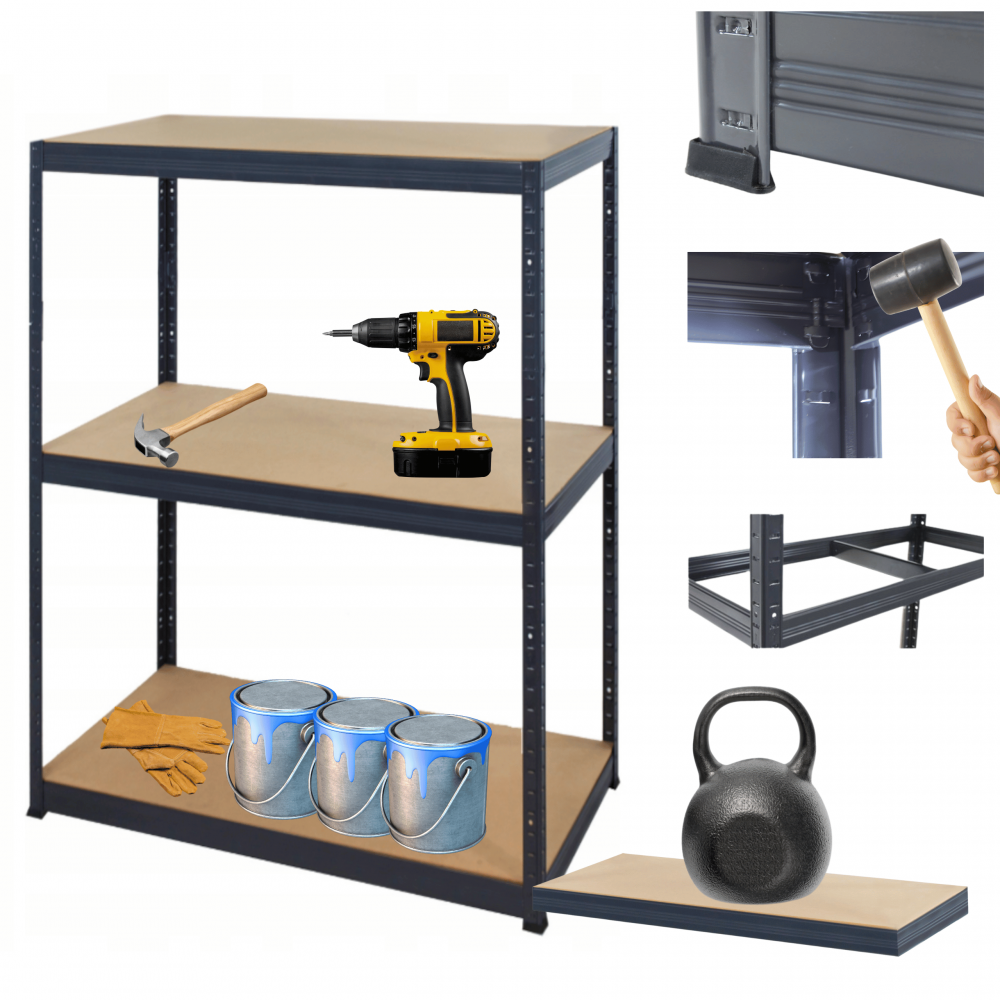 - Nośność na 1 półkę: 175 kg (aby otrzymać udźwig całego regału pomnóż ilość półek razy nośność jednej półki, cały regał może mieć nośność aż 2400kg!)