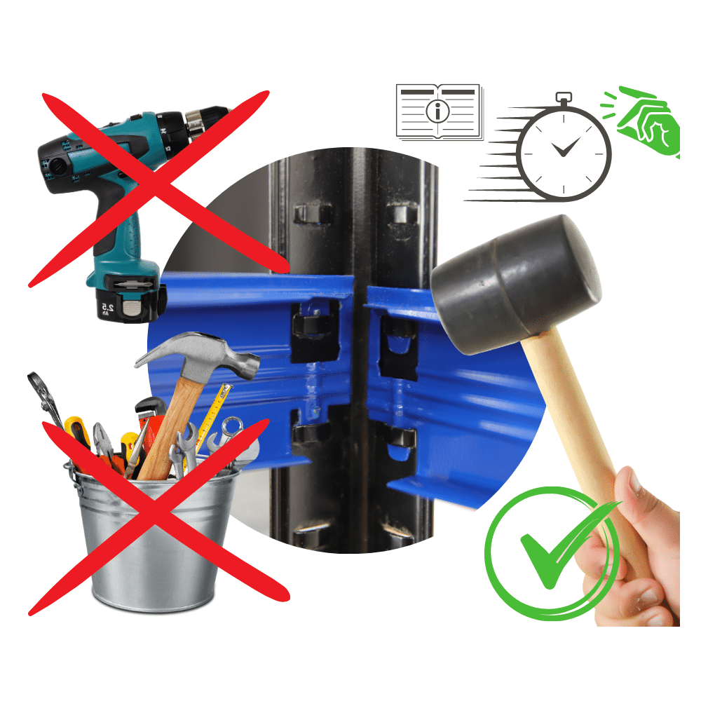 Montujesz na wcisk-zastrzask. Nie potrzebujesz narzędzi, sprzętu, śrub. Pomocny bedzie jedynie gumowy młotek.